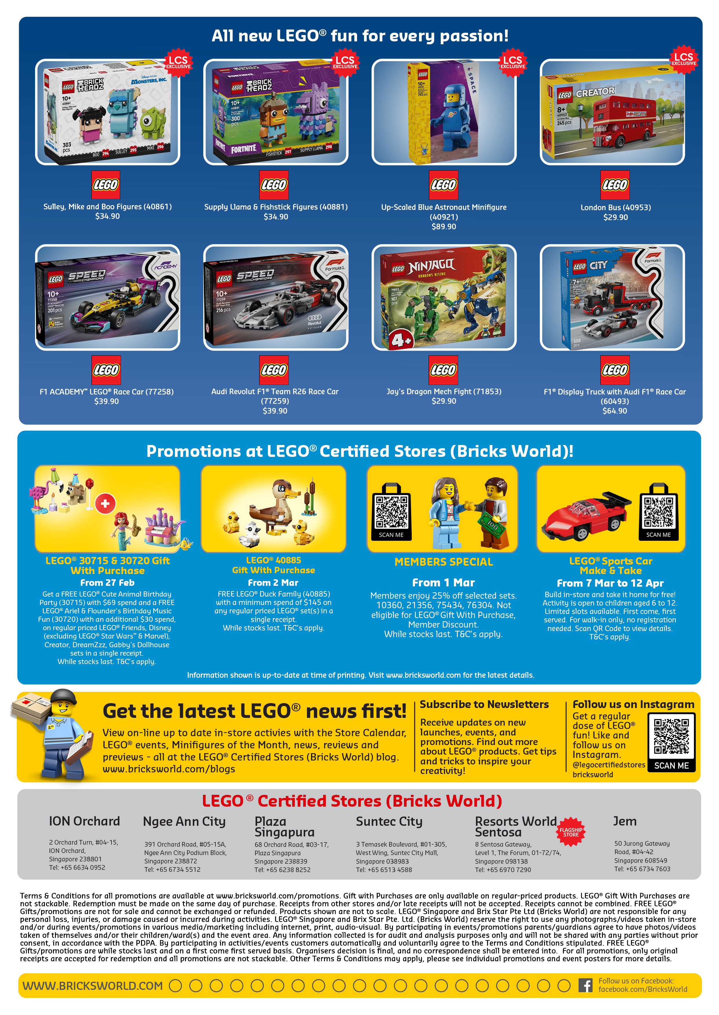Check out this month's activities and promotions for LEGO® Fans. Available at LEGO® Certified Stores (Bricks World).