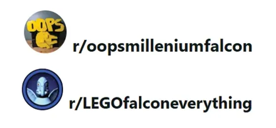 While r/oopsmillenniumfalcon focuses on accidental resemblance, r/LEGOfalconeverything takes a more deliberate approach.